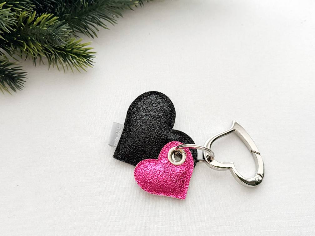 Umetno, (eco)usnje, v kombinaciji s srebrno rinko in karabinom v obliki srčka