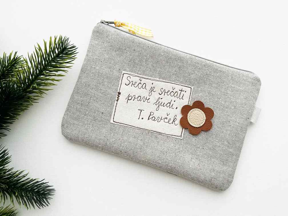 Domov IzdelkiKjut male stvarceDrobižnice in toaletkeToaletka “Sreča je srečati …”, T. Pavček, siva